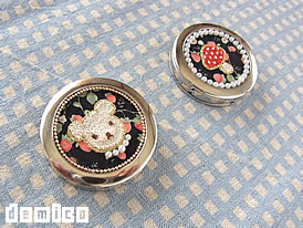 きのこの縁取りはデコ用パール、白くまの縁取りはピンクゴールドのボールチェーンで仕上げました!くまはパールのネックレスしてます(笑)。